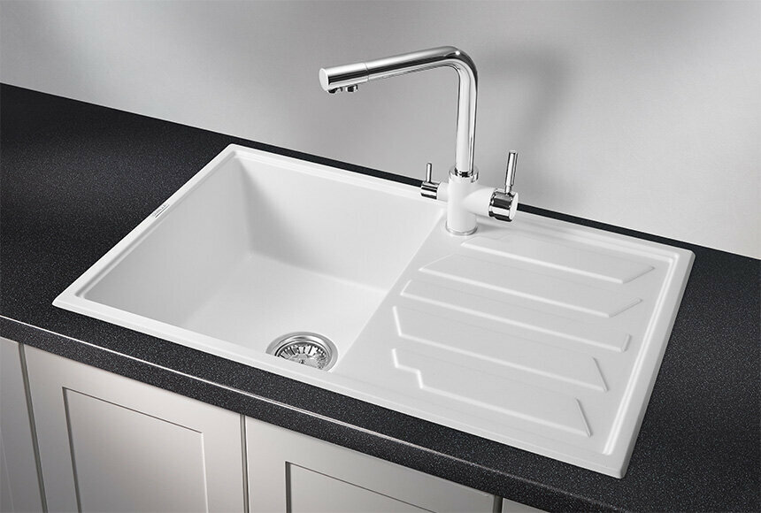 GR-8002, арктик (белый), кухонная мойка, кварц