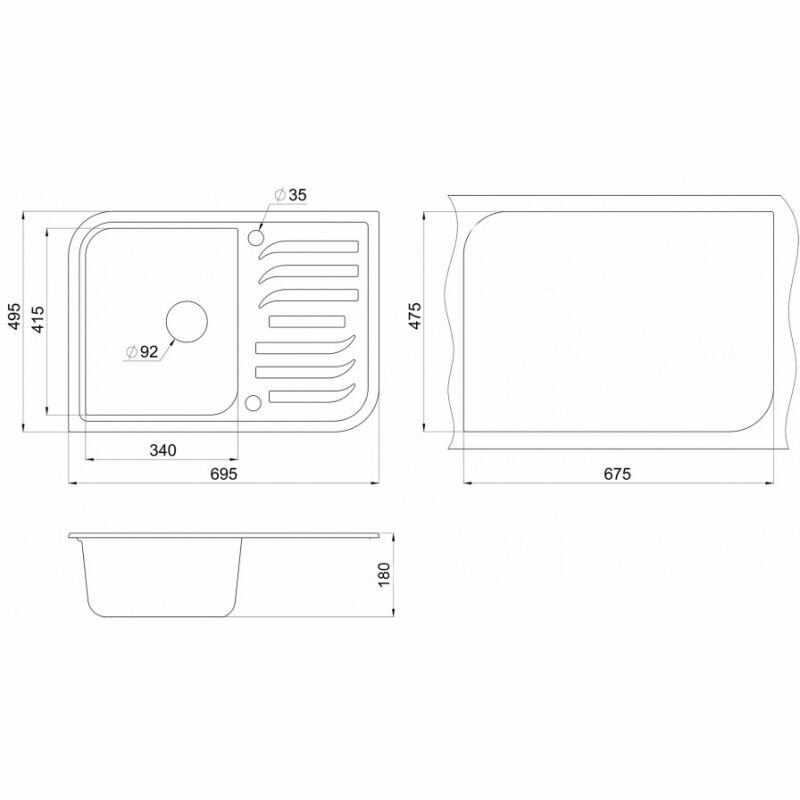 Мойка для кухни GRANULA Quarz 7001 (GR-7001 шварц) шварц (выведено)