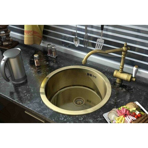 Мойка для кухни врезная Zorg SZR-500-Bronze из нержавеющей стали, d 460 мм, бронза
