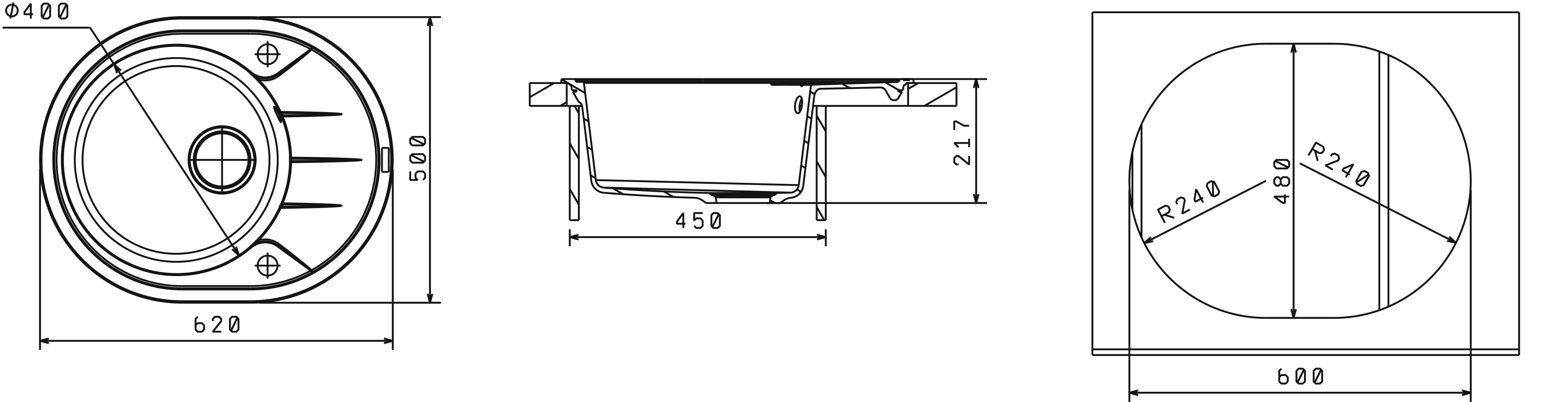 Мойка кухонная округлая Флорентина Родос 620 Жасмин (20.245.В0620.201)