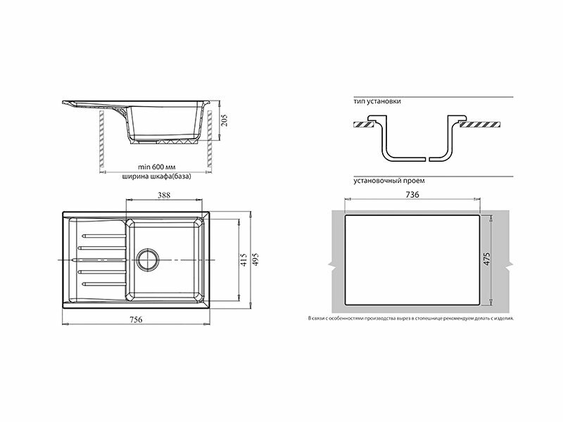 | Минусы: | Поверхность для установки смесителя под наклоном и нет специально подготовленой разметки для установки смесителя |