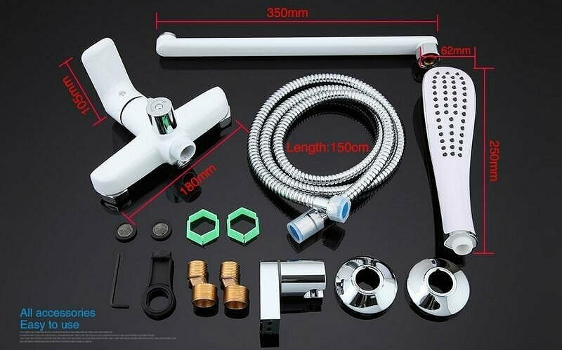 Белый цвет подходит под цвет сантехники и похожего смесителя в раковине. Всё в одном стиле. По моему - прикольно. Помывшись в душе по привычке закрываю кран и забываю перевести переключатель в положение гусака. Потом кто-нить приходит, открывает кран и получает душ воды на бошку. За это минус один. |