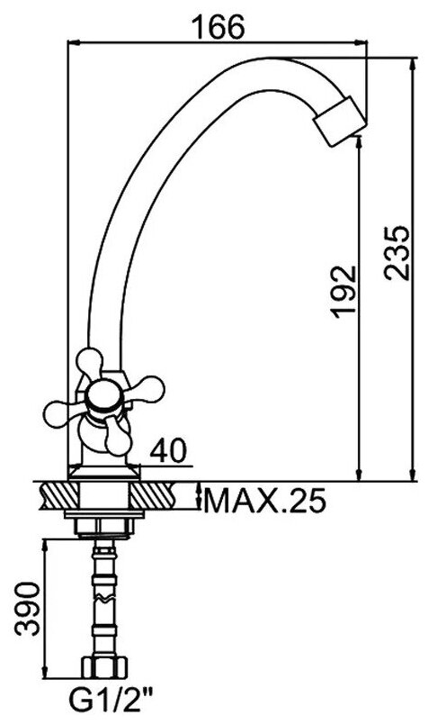 Смеситель для кухни L4908 с гайкой 1/2 м/к крест 13705/141509