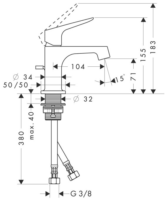 | Длина излива | 104 мм |
