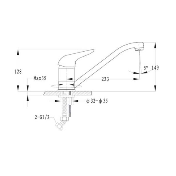 Смеситель для кухни GRANFEST 2124 D-40mm (черный)