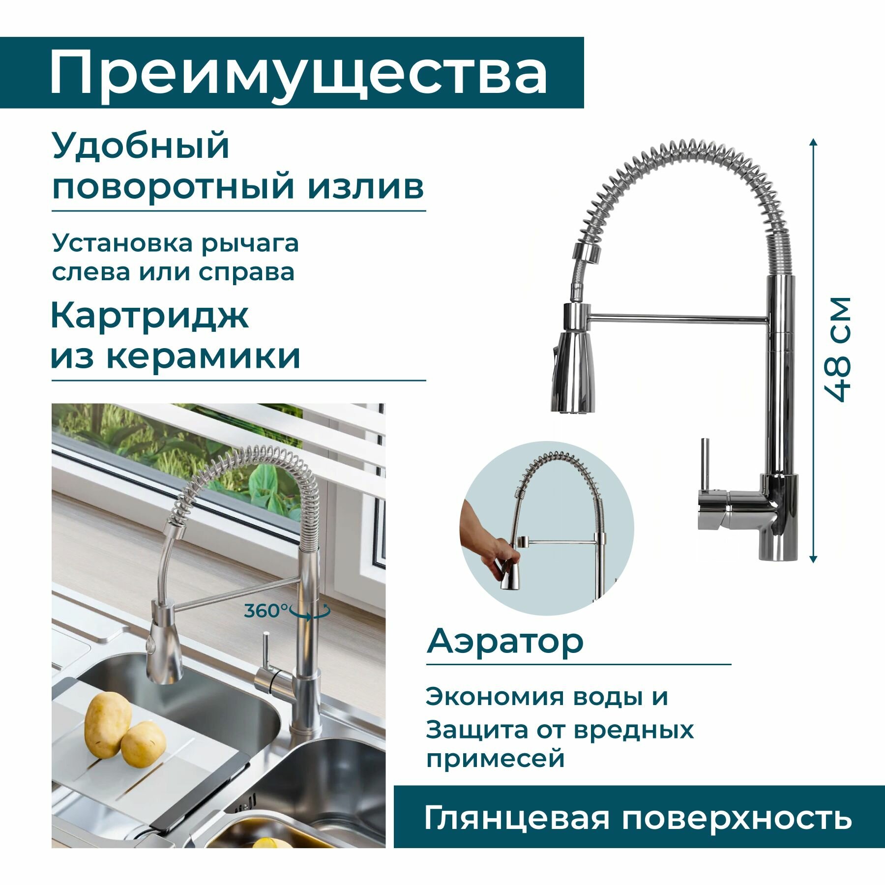 Смеситель для кухни с высоким выдвижным поворотным изливом ALVEUS BILLY-S CHR хром