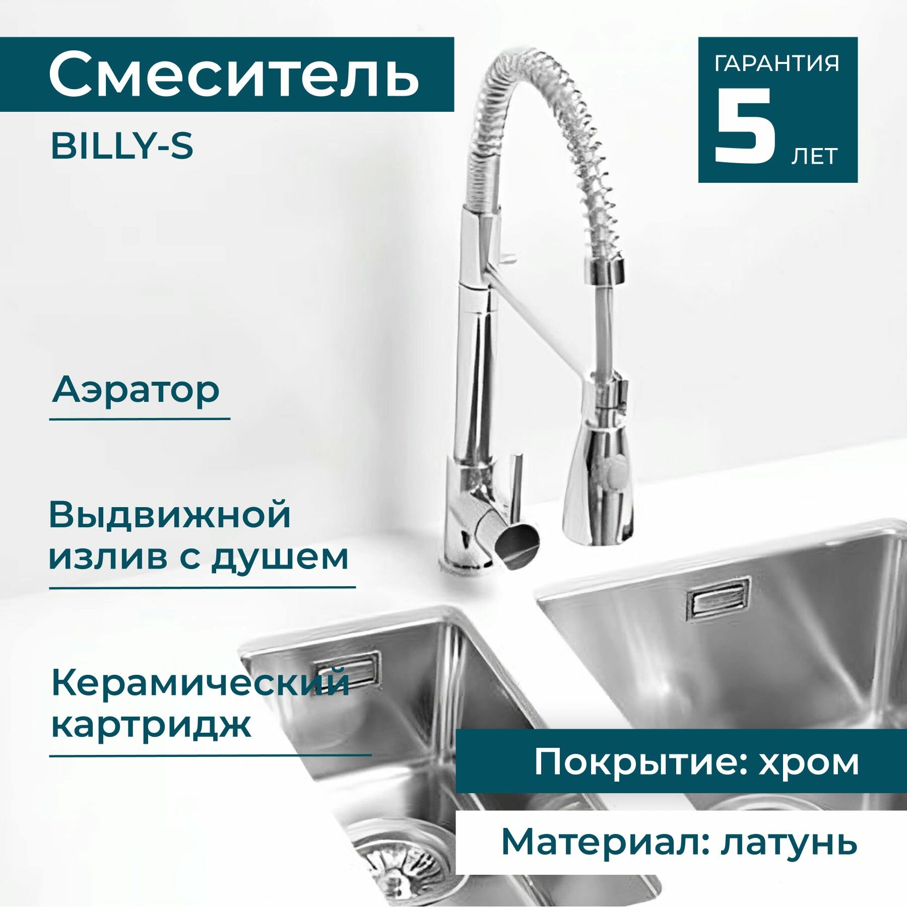 Кухонный смеситель Alveus Billy-S (хром) с выдвижным изливом и душем
