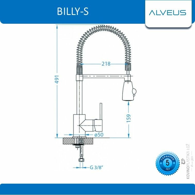 Смеситель Alveus Billy-S CHR 1098727 для кухонной мойки