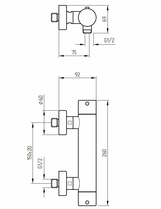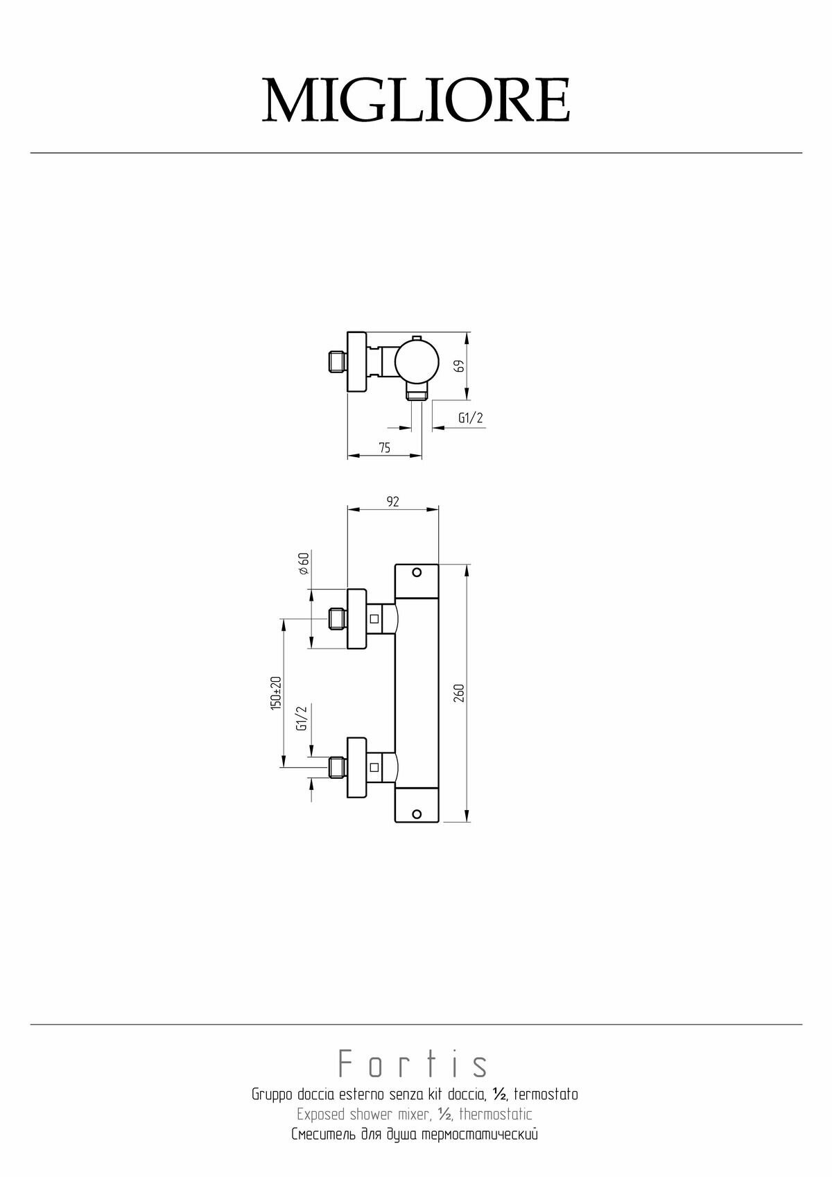 Смеситель для душа моноком. внешний, выход М1/2" (снизу), термостат, ручка упр. справа, хром Migliore FORTIS ML.FRT-5478.CR