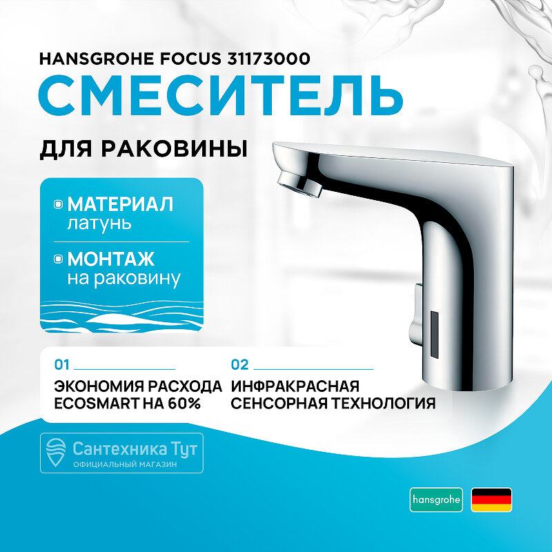 Смеситель для раковины Hansgrohe Focus инфракрасный датчик, питание от сети, хром (31173000)
