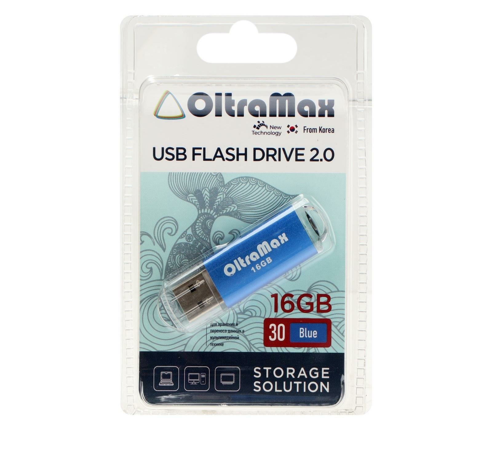 OltraMax Флешка OltraMax 30, 16 Гб, USB2.0, чт до 15 Мб/с, зап до 8 Мб/с, синяя
