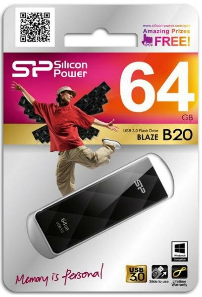 Флешка 64Gb Silicon Power Blaze B20, USB 3.0, Черный SP064GBUF3B20V1K