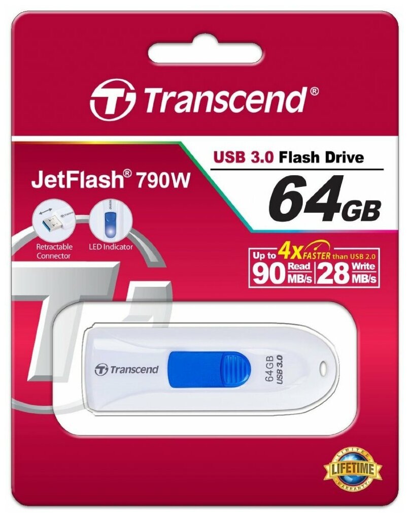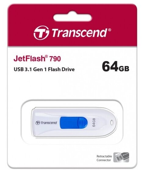 Флешка Transcend JetFlash 790 64 ГБ, 1 шт., белый/синий