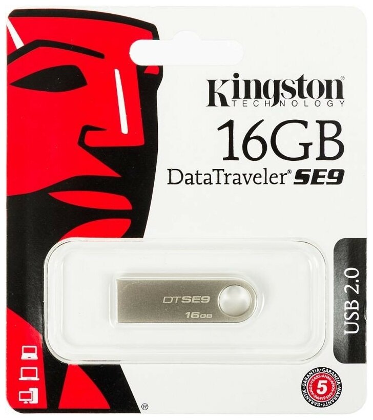 Флешка Kingston DataTraveler SE9 16 ГБ, 1 шт., серебристый