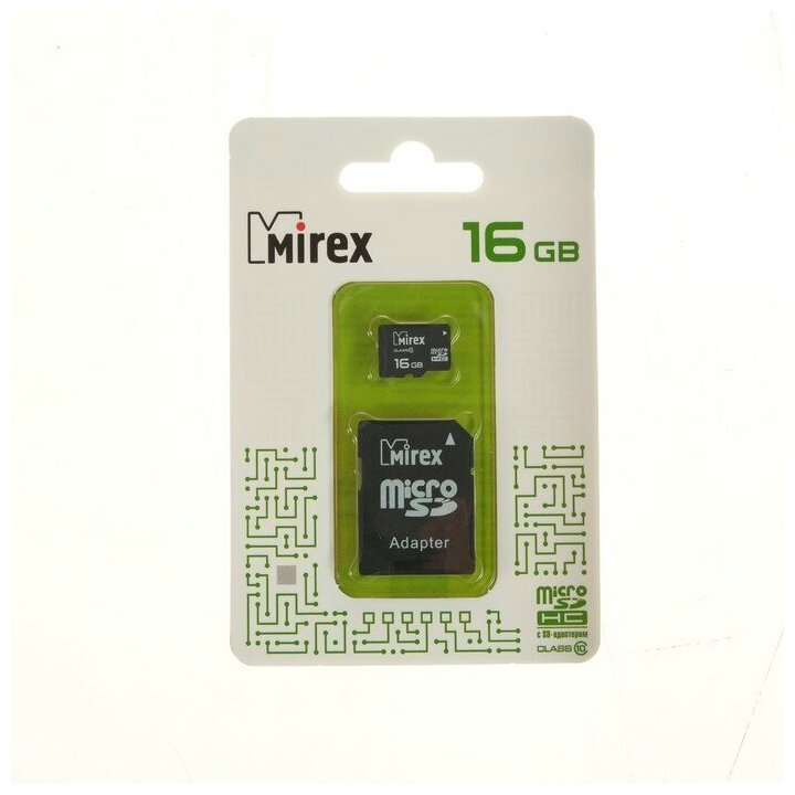 Карта памяти Mirex microSDHC 16 ГБ Class 10, R/W 25/10 МБ/с, адаптер на SD, 1 шт., черный
