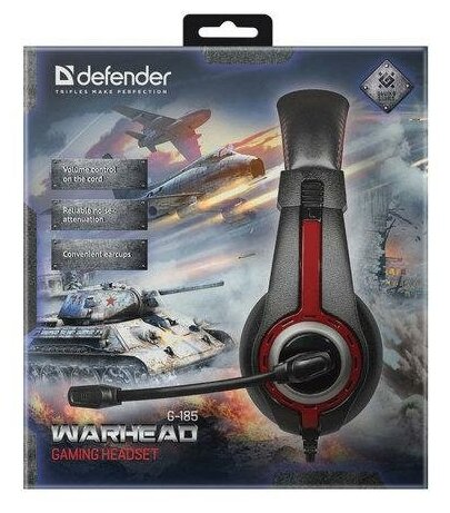 Defender Гарнитура Defender G-185 Warhead 64106, с регулятором громкости, черно-красный (ret)