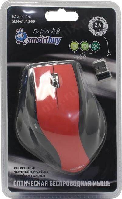 Купить Мышь Smartbuy 613AG, беспроводная, оптическая, 2000 dpi, 2xAA , USB, красная