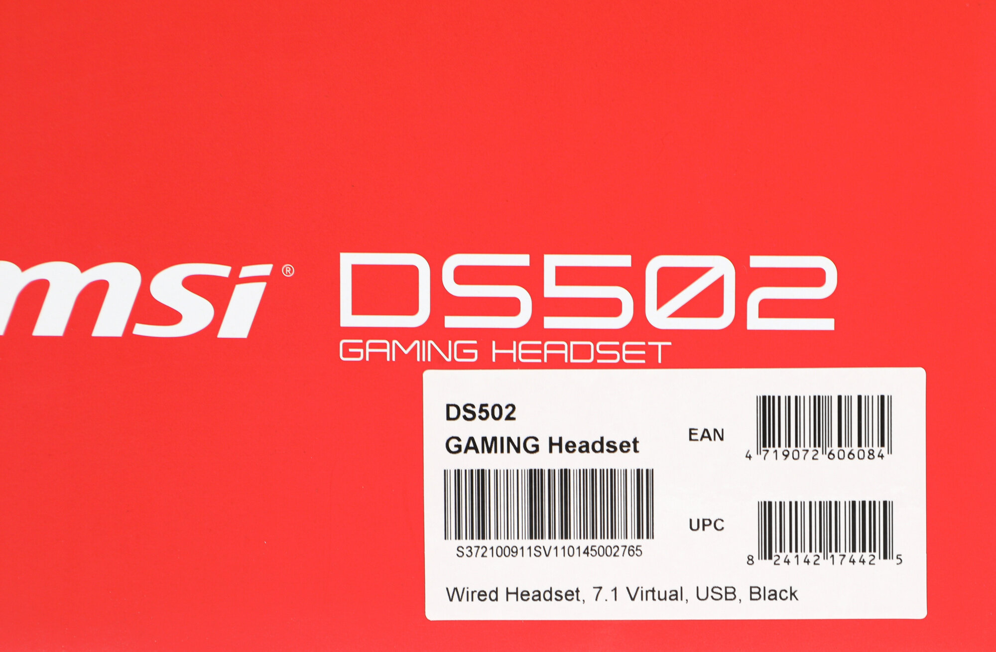 Gaming Headset MSI Immerse DS502, virtual 7.1 surround sound, USB, Over-ear, In-line controller and foldable microphone.