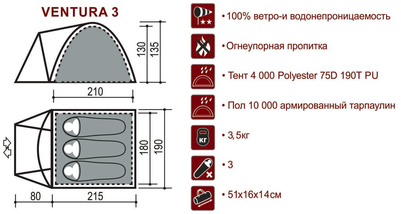 | Водостойкость тента | 4000 мм в.ст. |