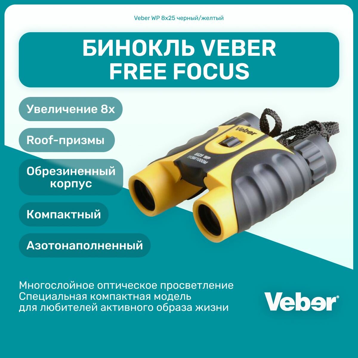 Бинокль Veber 8*25 WP черный-желтый 20764_VEBER .