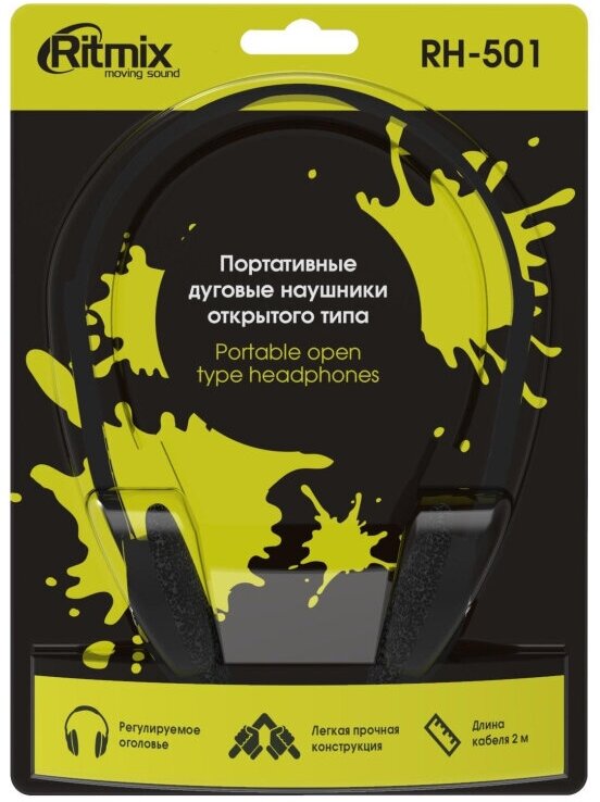 Наушники Ritmix RH-501 накладные кабель 2м, чёрные интересное: