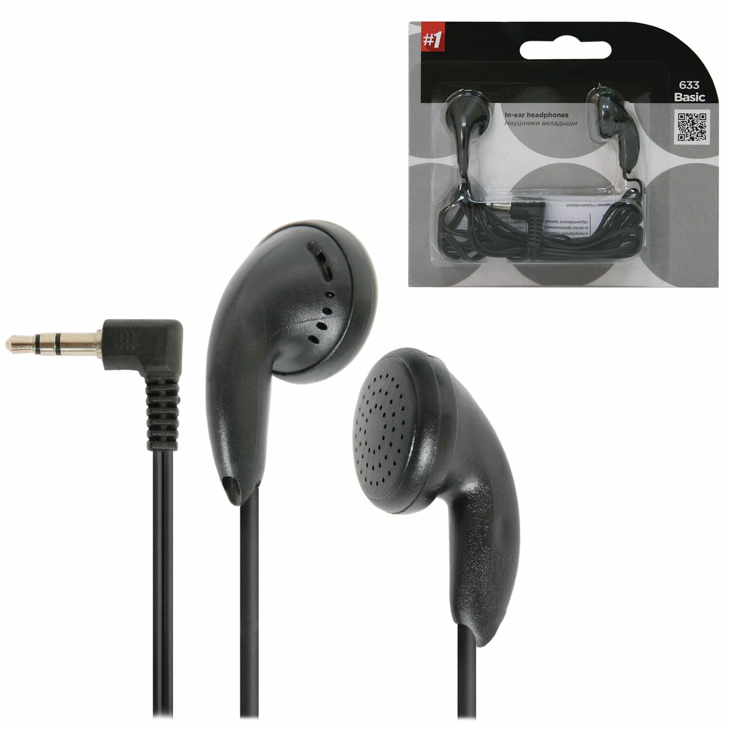 Наушники Basic 633, вкладыши, черные, 2 шт.