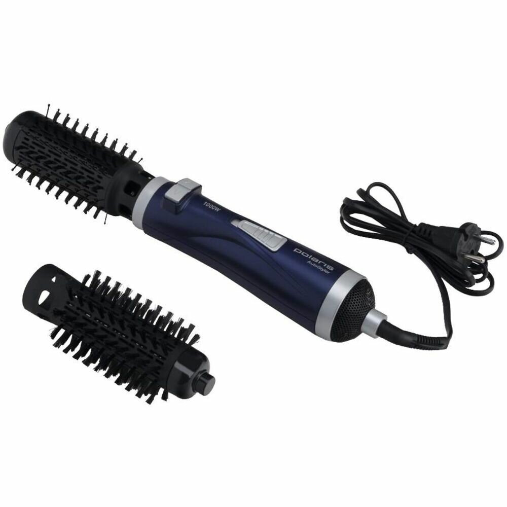 Фен-щётка Polaris PHS 1002, 1000 Вт, 2 режима, 2 насадки, хол.воздух, синяя