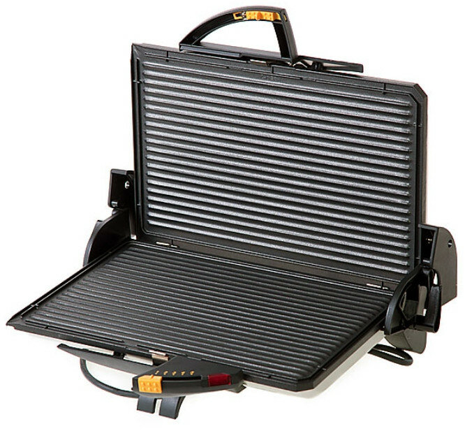 | Плюсы: | Съемные панели (3шт) легко снимаются и моются. Самонастраивающиеся, на всю толщину продукта, шарниры. Можно жарить как на 2 грилях, только переворачивать придется;) |
