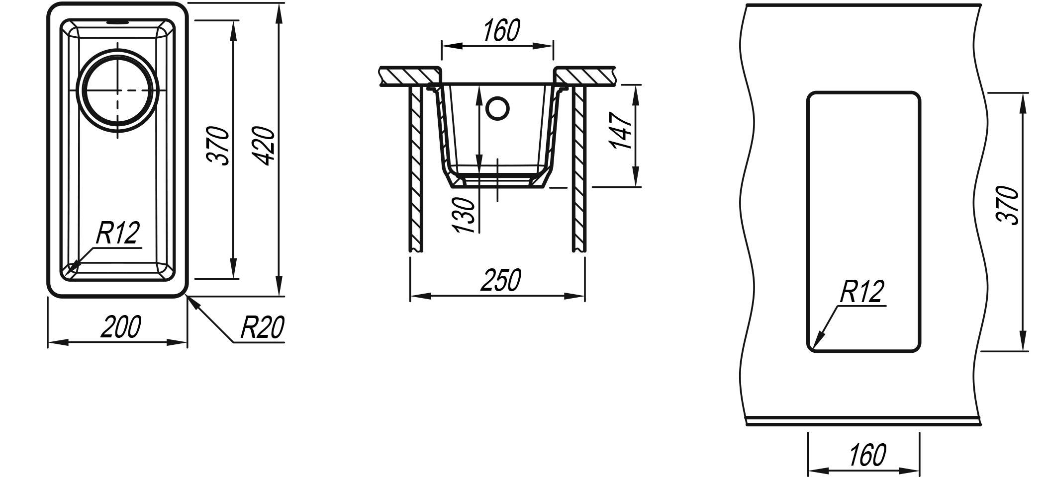 Чаша для мойки прямоугольная Флорентина Вега 160 Антрацит (22.300.00160.302)