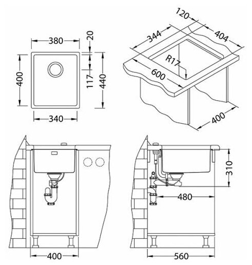 Мойка KOMBINO 20 SAT-90 340X400X200 в комплекте с сифоном 1130550,