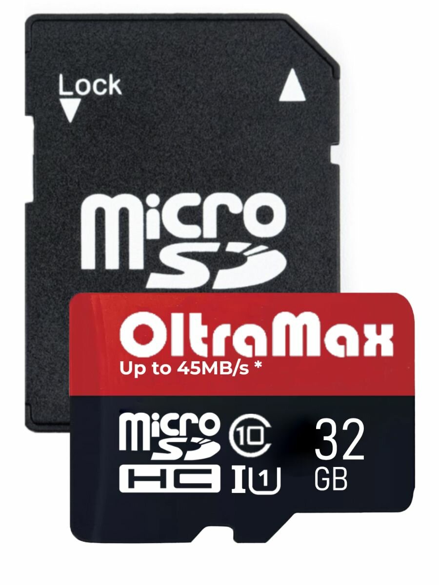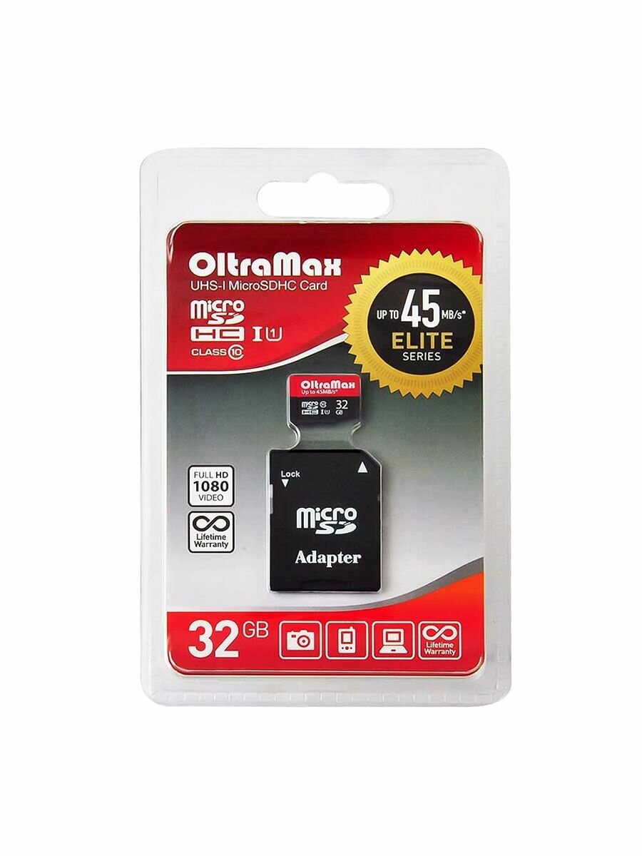 MicroSD 32GB OltraMax Class 10 + SD адаптер Class 10 UHS-1 Elite с адаптером SD 45 MB/s