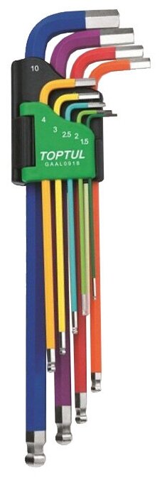 Набор ключей шестигр. 1,5-10мм 9шт экстра-длин.с шар. цветные TOPTUL (GAAL0918) интересное: