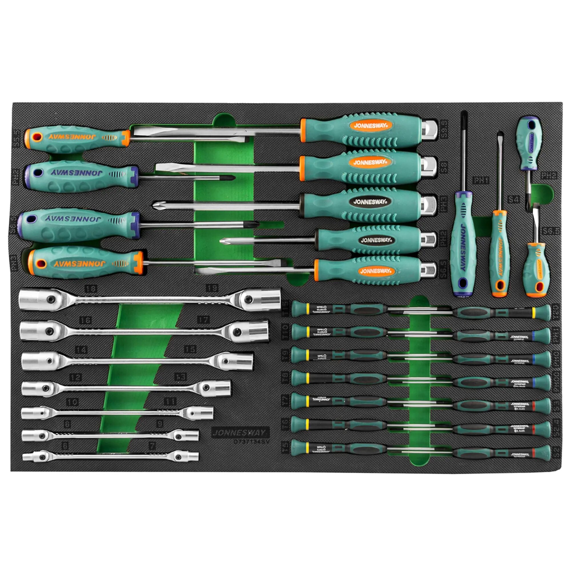 JONNESWAY D737134SV D737134SV Набор стержневых отверток и ключей гаечных карданных в EVA ложементе 560х400 мм, 34 предмета