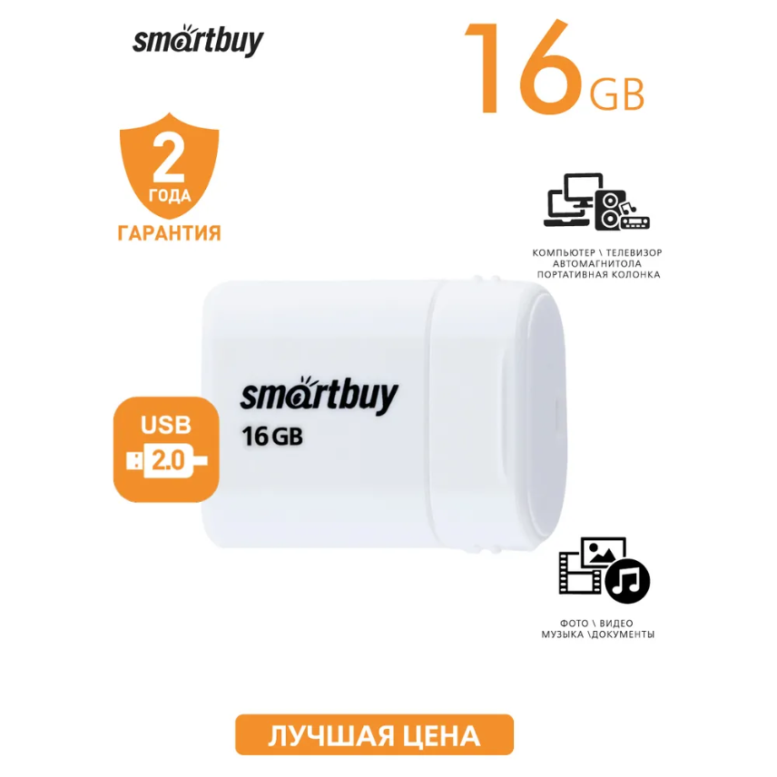 Usb Flash Drive Smartbuy 16Gb Lara Белый Smartbuy арт. 16GbLara