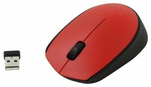 Мышь Logitech M171, оптическая, беспроводная, USB, красный и черный [910-004641]