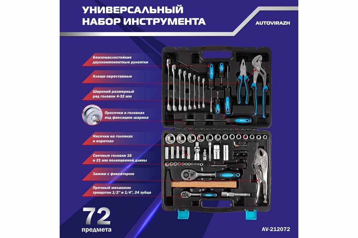 Набор инструментов (72 предмета) "AUTOVIRAZH" AUTOVIRAZH AV-212072 | цена за 1 шт