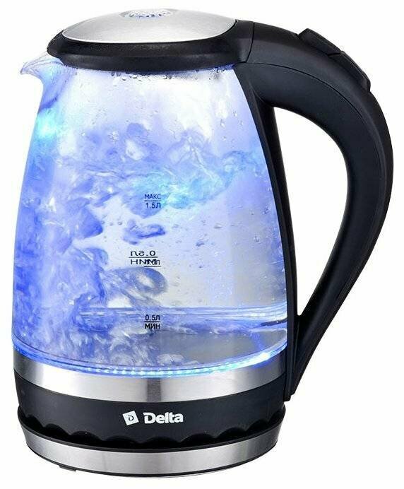 СохранитьЭлектрочайник DELTA DL-1202, корпус из жаропр. стекла, черный: 2200 Вт, объем 1,5 литра интересное: