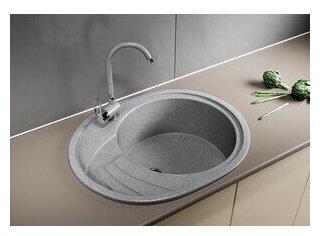 Мойка для кухни из искусственного мрамора, овальная, с крылом, с сифоном, MIXLINE ML-GM 17, темно серая