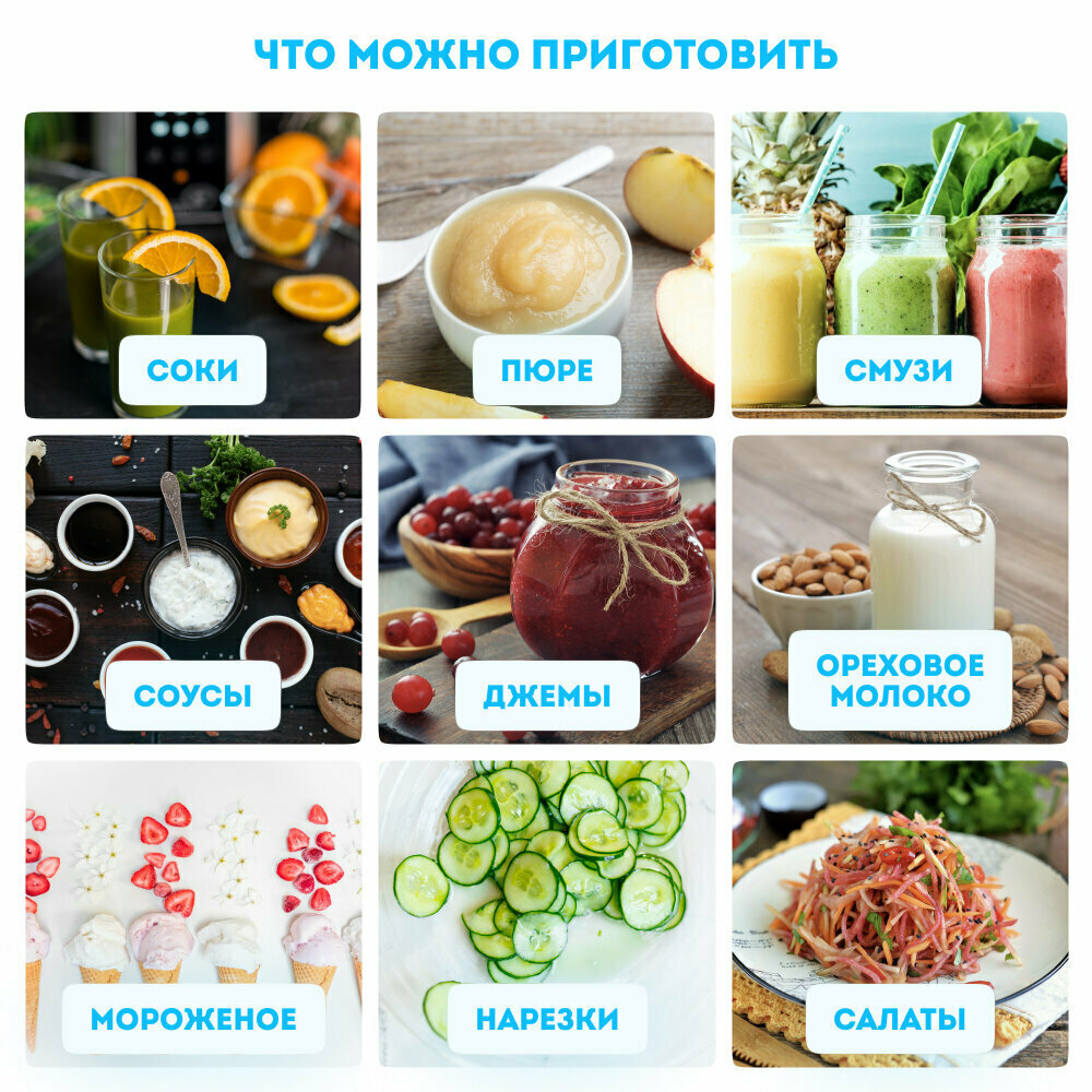анти-капля большая комплектация большая мощность двигателя делает ореховое молоко делает пюре и детское питание делает сорбет ещё и тёрка и слайсер из экологически чистого материала мощный, холодный отжим, разные насадки отжимает абсолютно всё простое сенсорное управление работает очень тихо сок с мякотью и без |