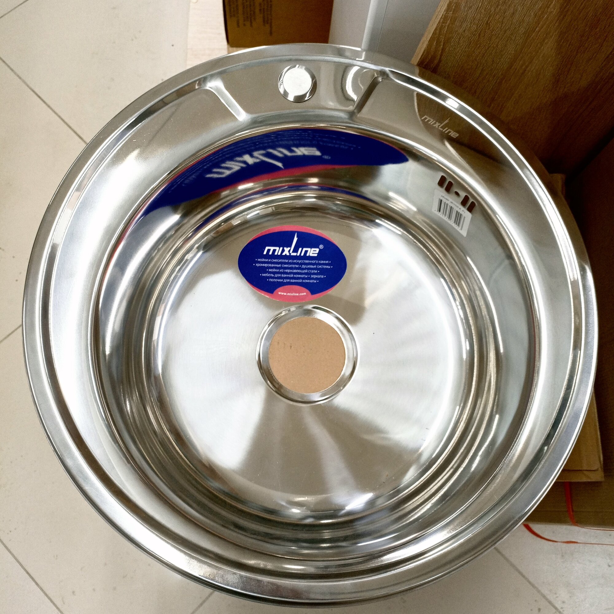 mixline Мойка круг d 51 0,6 вып 3 1/2 глуб чаши 17см с сифоном 528184 .