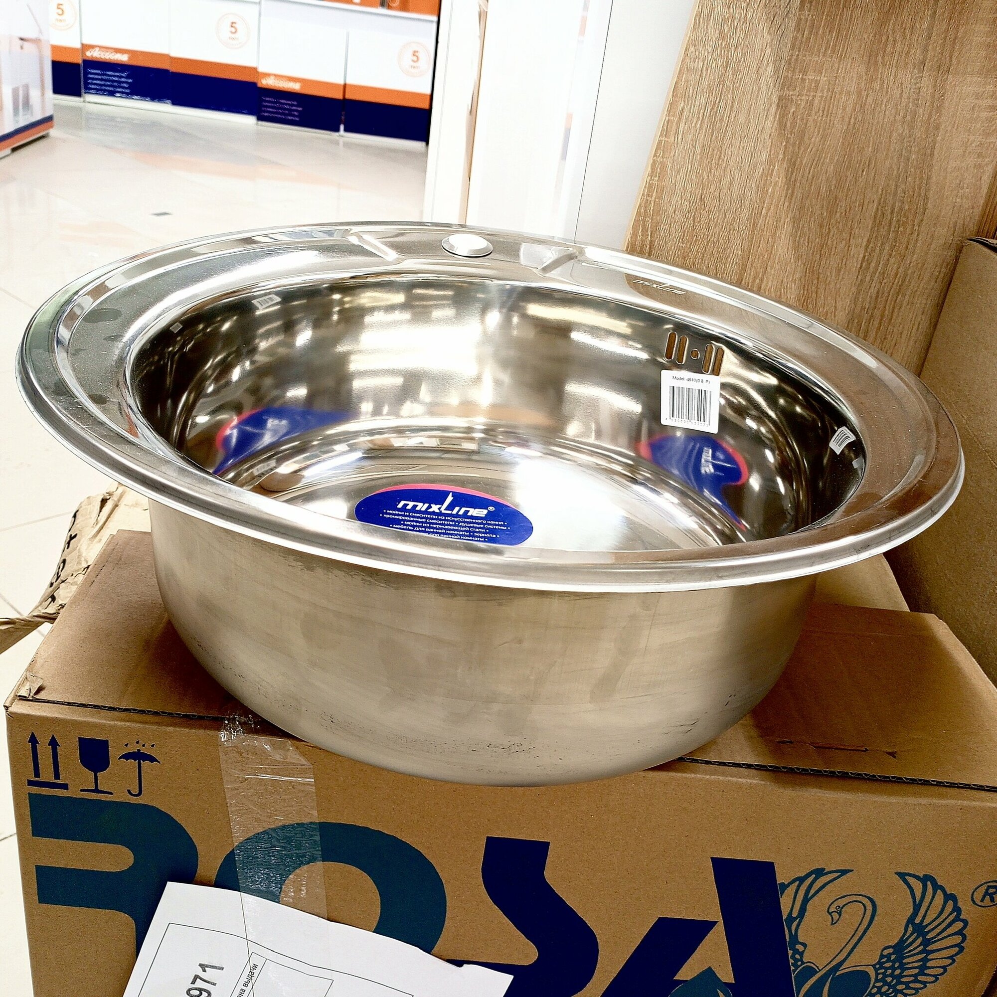 Врезная кухонная мойка Mixline из нержавеющей стали круглая d 51 см выпуск 3 1/2 глубина 17 см