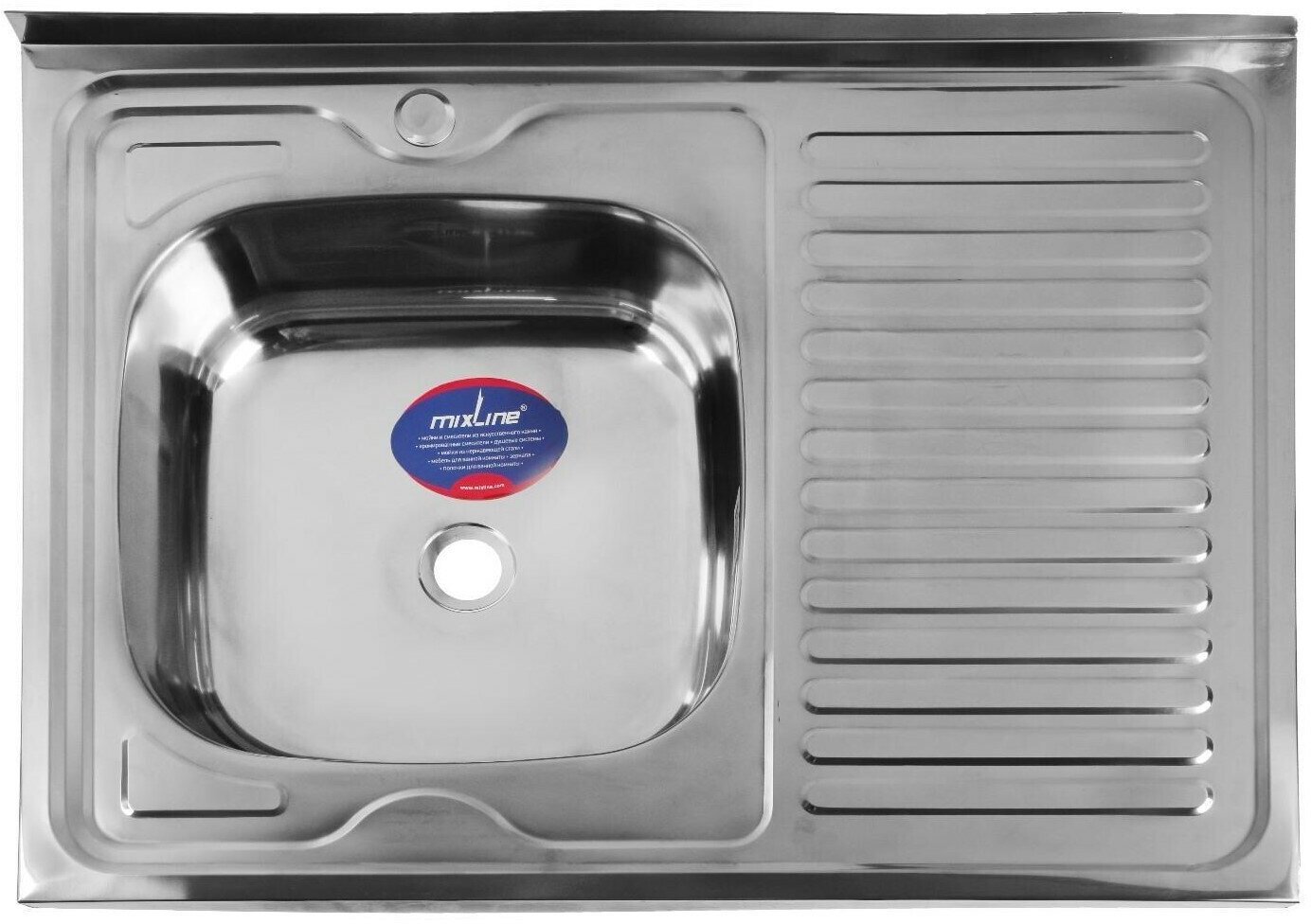 Мойка кухонная MIXLINE 527970, накладная, толщина 0.4 мм, 80х60х16 см, левая, выпуск 1 1/2" MIXLINE
