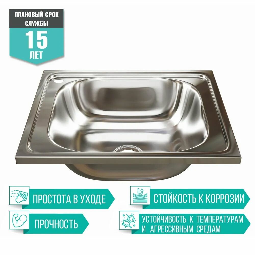 Мойка для кухни MIXLINE 527962, накладная, толщина 0,4 мм, 50х40х16 см, выпуск 1 1/2"