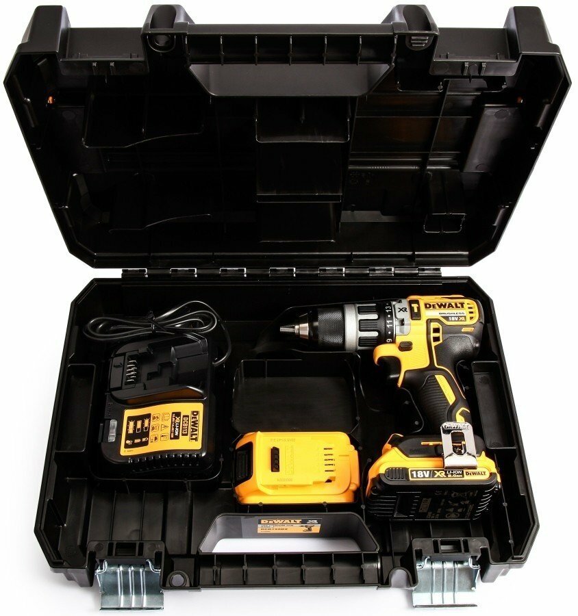 Аккумуляторная бесщеточная ударная дрель-шуруповерт DEWALT, 18 В, 2000 об/мин, 34000 уд/мин, с АКБ 1.7 Ач и ЗУ, в кейсе TSTAK, DCD796E1T