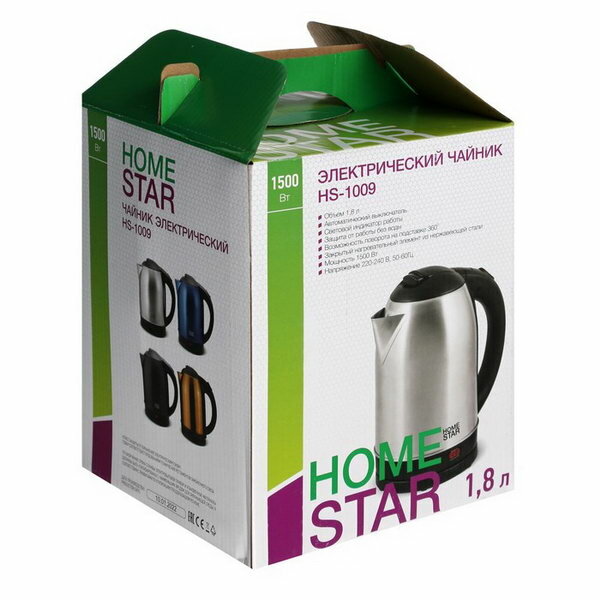 чайник HOMESTAR HS-1009 1500Вт, 1,8л сталь
