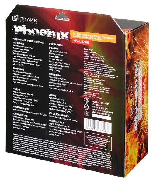 Гарнитура игровая Оклик HS-L320G Phoenix, черный/красный (359482)