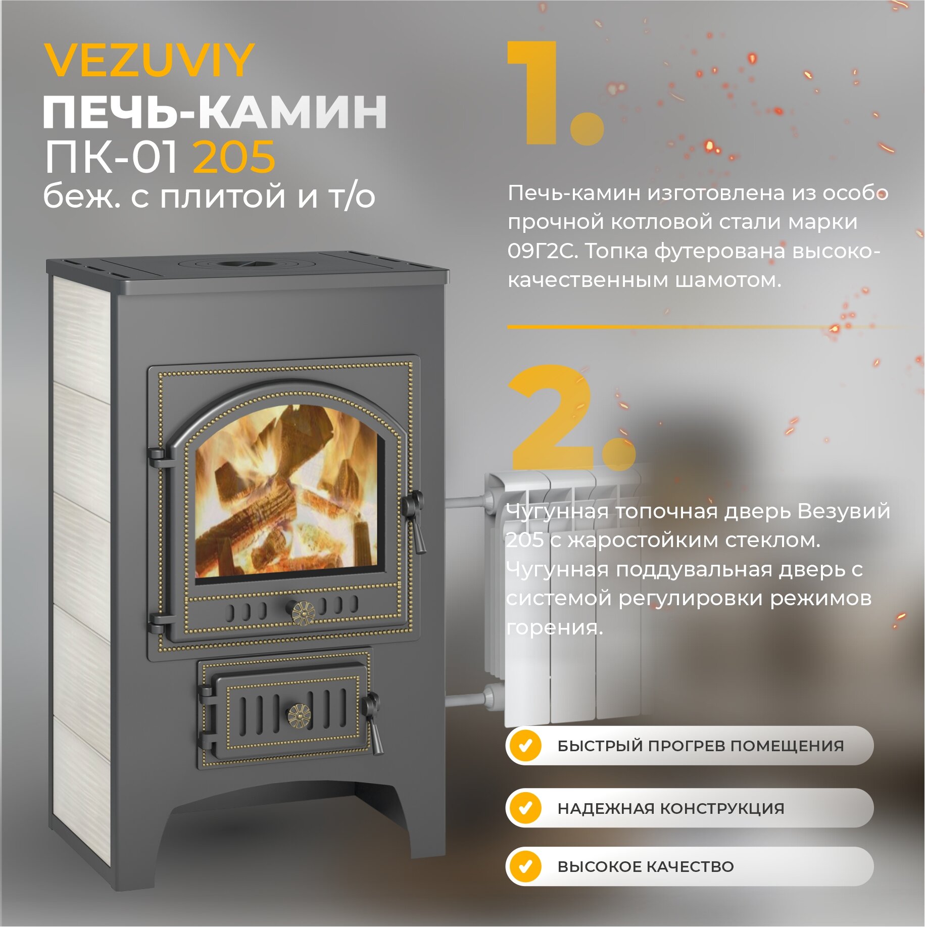 Ниже Вы можете прочитать отзывы на Печь-Камин везувий ПК-01 (205) с плитой и т/о бежевая.12 кВт (200 м3), ознакомится с подробными характеристиками, посмотреть интересные обзоры и фотографии на Печь-Камин везувий ПК-01 (205) с плитой и т/о бежевая.12 кВт (200 м3).