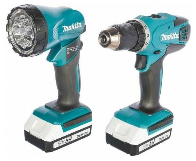 Дрель-шуруповерт Makita DF 457 DWLE, акк., 18В, 2х1.5Ач, БЗП-13мм, 1400 об/мин, фонарь MAKITA 329049