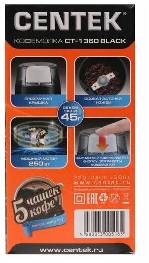 Кофемолка CENTEK CT-1360, черный (CT-1360 BLACK)