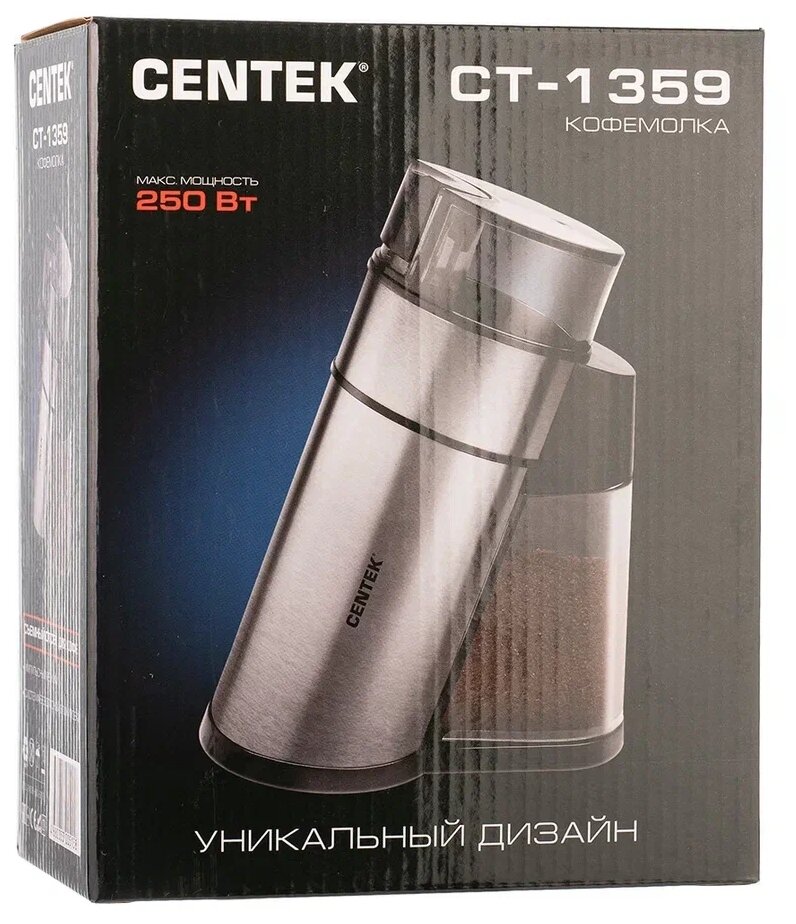 Кофемолка Centek CT-1359 (сталь) 250Вт, 70 г, 7 чашек, уникальная форма, прозрачная крышка